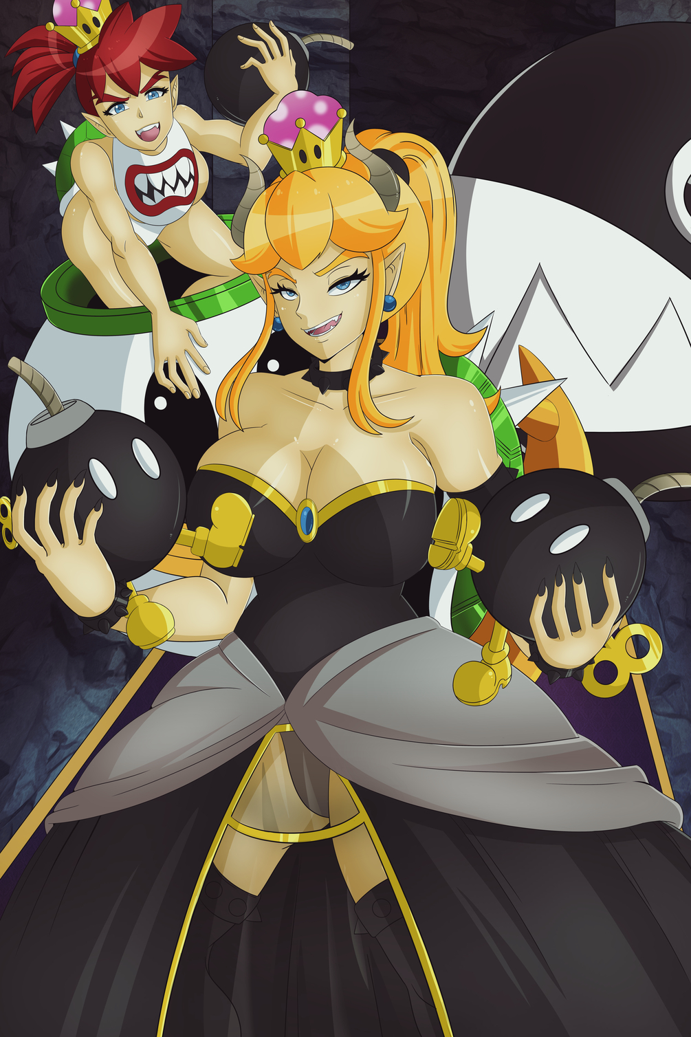 A 11 × 14in. High-Quality Large Format Print of Bowsette and Bowsette Jr. with their pet Chain Chomp. Printed on long-lasting Fujicolor Crystal Archive paper.